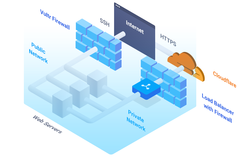 图:带有集成防火墙的 Vultr 负载均衡器示意图