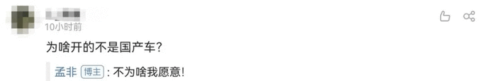这位网友的潜台词显而易见:“你是中国人,为何不开国产车?”