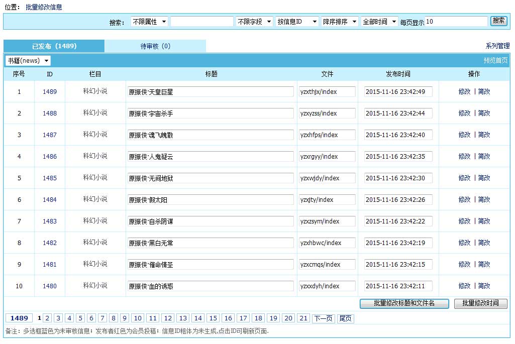 3、可以扩展成批量修改作者、来源、图片、tag、关键字等等。
