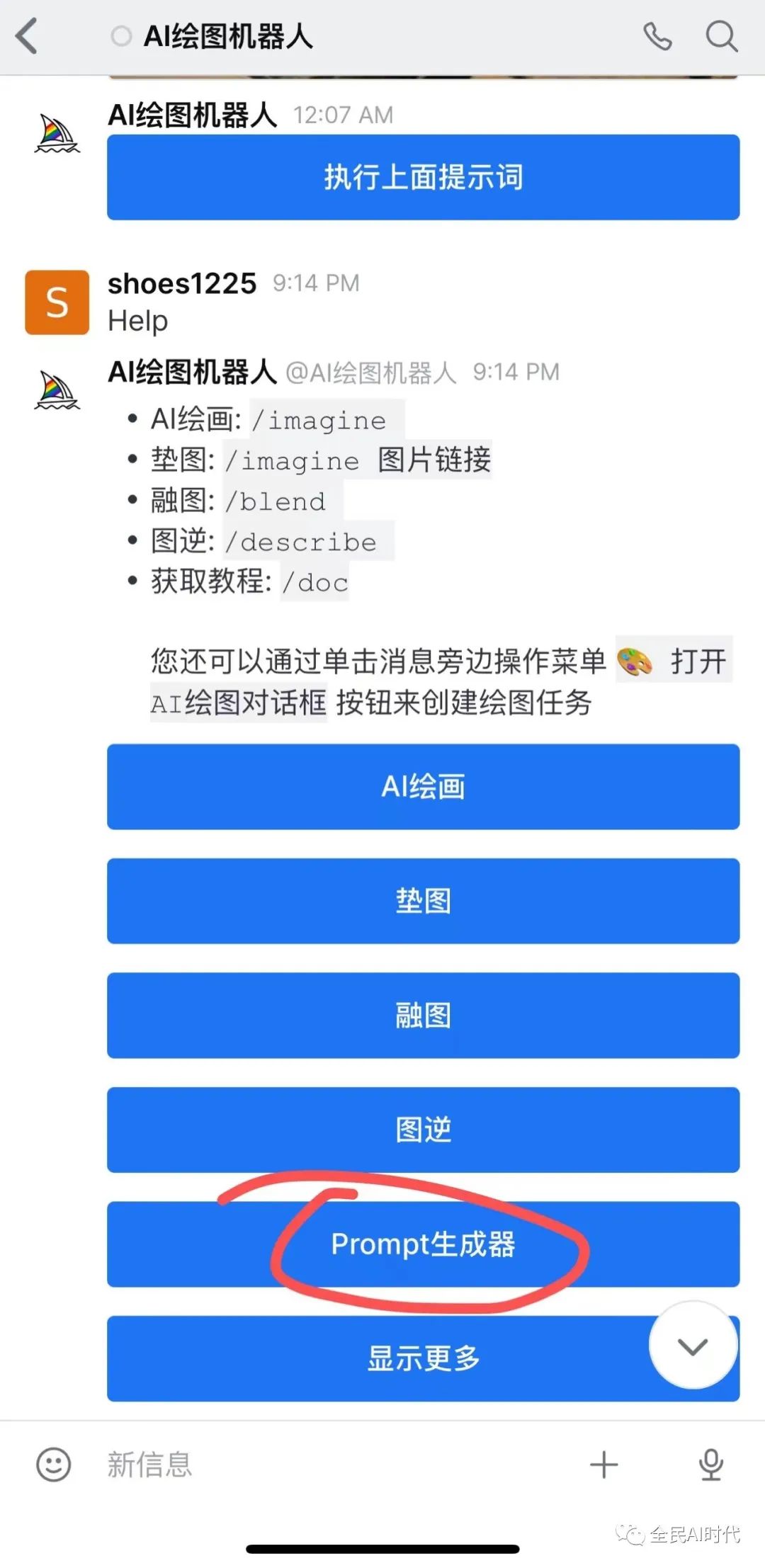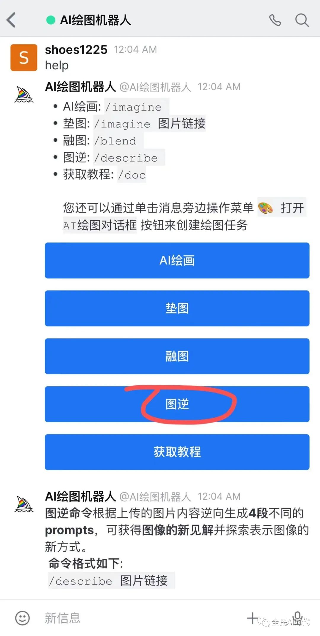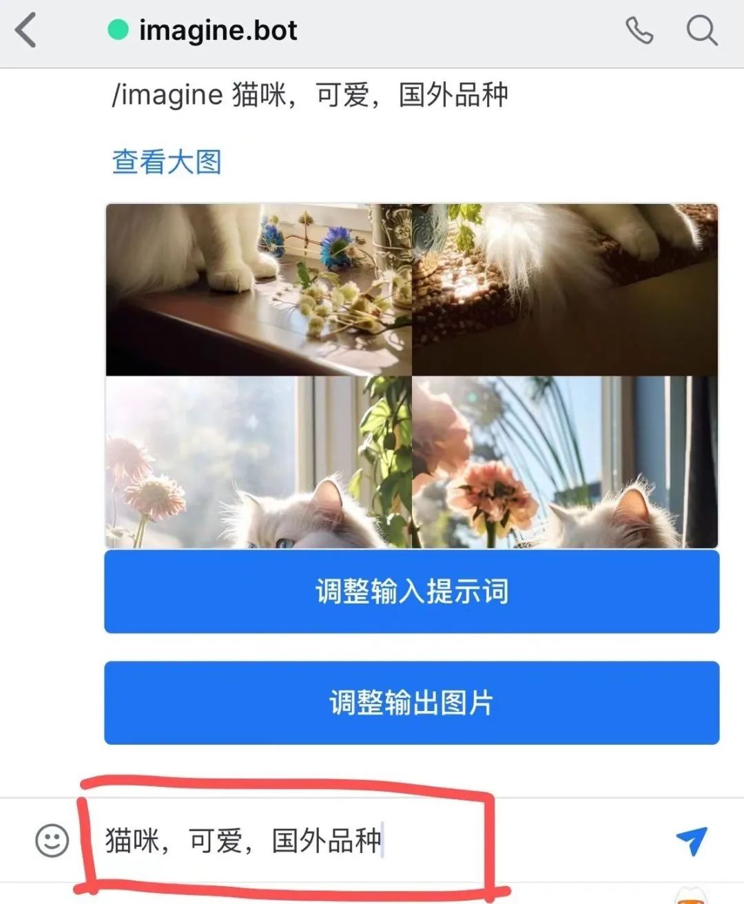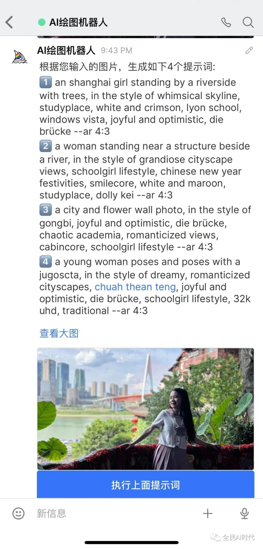 在聊天框中输入图片链接,空格,再输入描述词,发送,就会生成以此图片为参考图的四张图片。