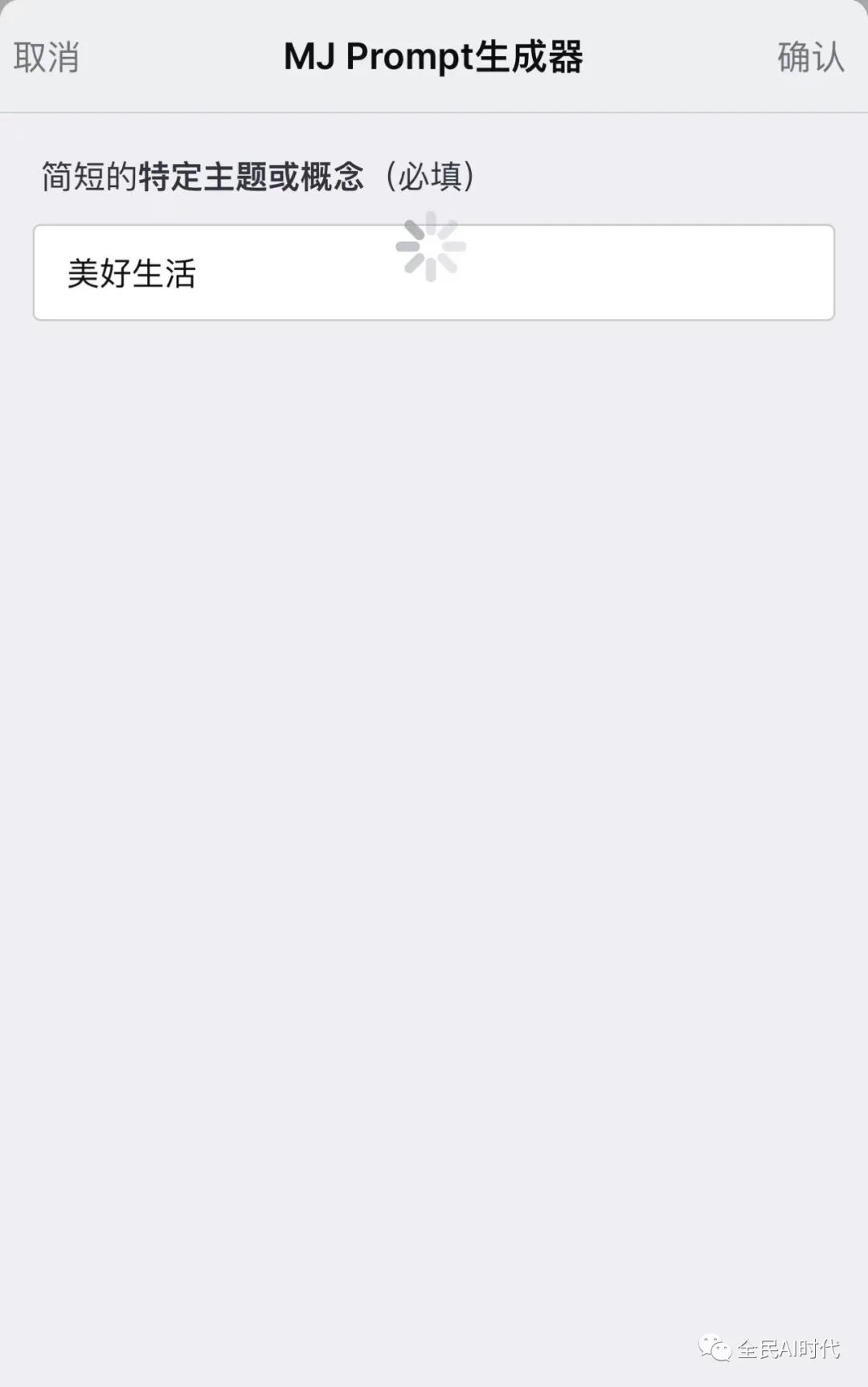 prompt生成器可根据输入的简短主题或概念,生成四组不同的提示词,然后执行提示词进行作画。点击“prompt生成器”,在弹出的任务框里输入简短的主题或概念,比如“美好生活”。