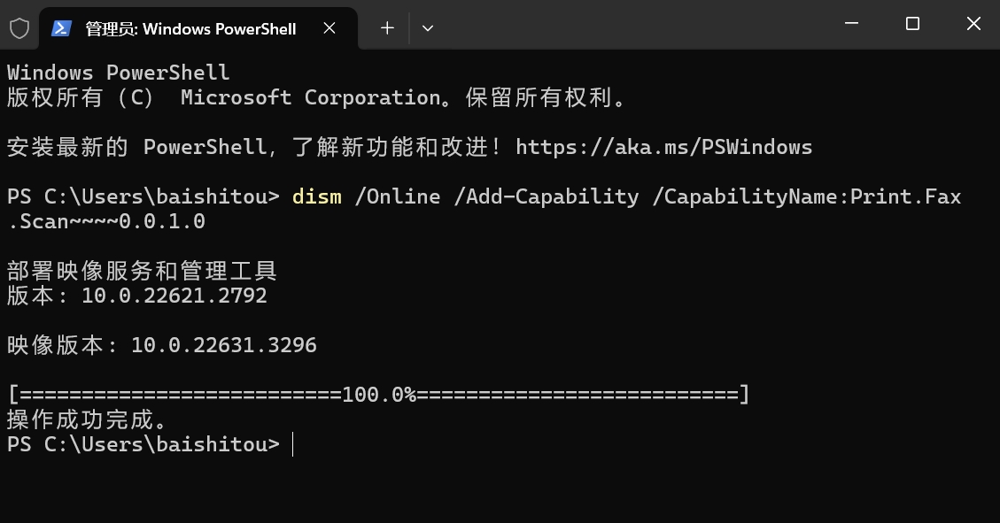 dism /Online /Add-Capability /CapabilityName:Print.Fax.Scan~~~~0.0.1.0