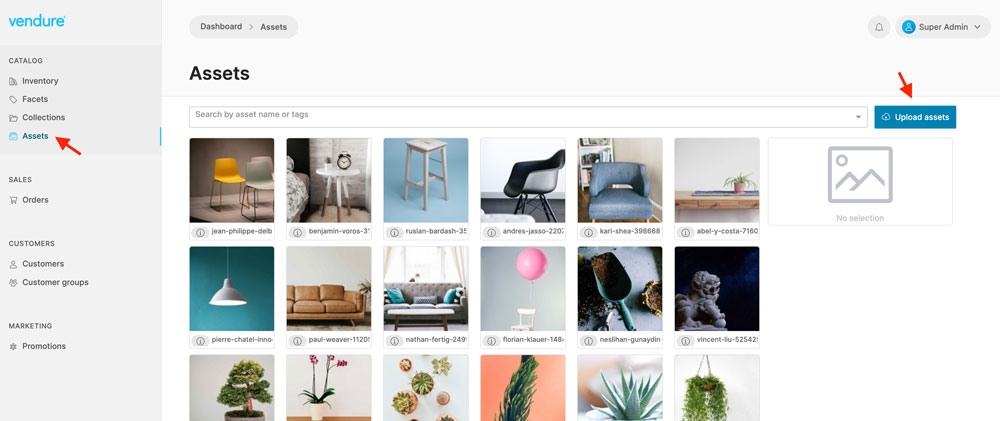 - Navigate to the Assets menu and upload a sample image