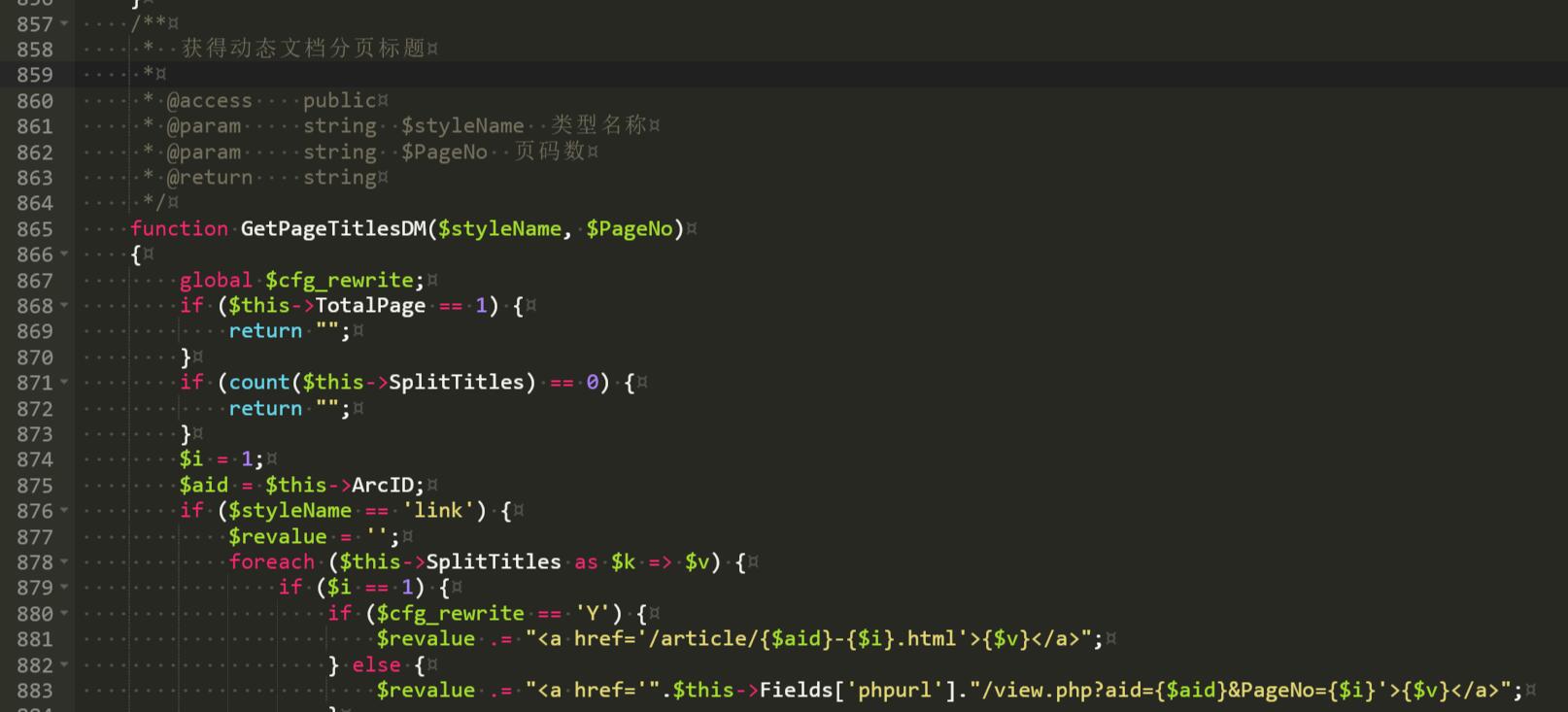 打开/system/archive/archives.class.php,搜索:获得动态文档分页标题, 大约在858行,